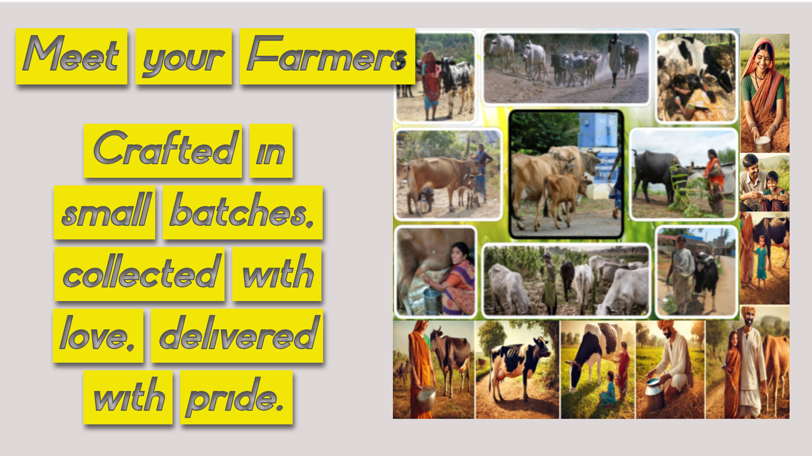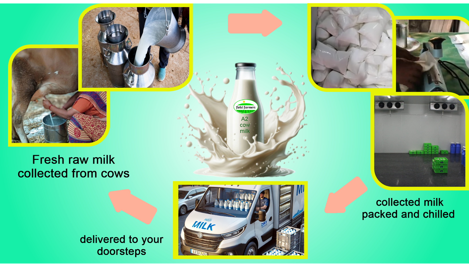 At the heart of Field farmers dairy journey believes a simple yet strongest mission – To bring good quality natural and fresh raw cow milk which is free from chemicals, preservatives, additives and adulteration which makes us to work closely with a trusted few handpicked farmers, a small network of local dairy farmers which produces limited batch of milk ensuring attention for every details of milk which is ethically sourced, meticulously tested and elegantly delivered to your doorstep.